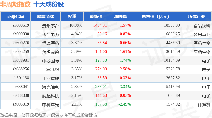 证券之星消息,10月16日,非周期(000064)指数报收于3699.88点,涨0.07%,成交1811.43亿元,换手率0.96%。当日该指数成份股中,上涨的有45家,兆易创新以3.03%的涨幅领涨,下跌的有53家,恒立液压以4.48%的跌幅领跌。