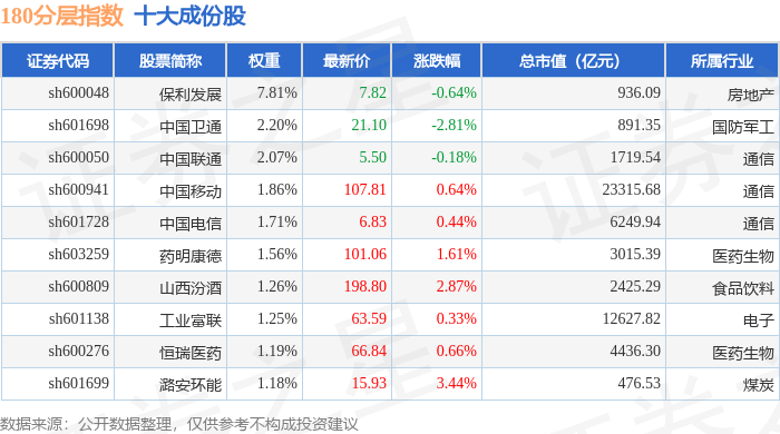 证券之星消息,10月16日,180分层(000093)指数报收于12368.17点,涨0.01%,成交3069.37亿元,换手率0.62%。当日该指数成份股中,上涨的有99家,中煤能源以7.35%的涨幅领涨,下跌的有75家,恒立液压以4.48%的跌幅领跌。