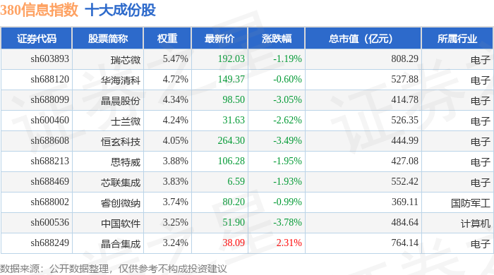 证券之星消息,10月16日,380信息(000111)指数报收于10063.29点,跌1.3%,成交390.72亿元,换手率2.73%。当日该指数成份股中,上涨的有9家,法拉电子以5.28%的涨幅领涨,下跌的有37家,至纯科技以6.57%的跌幅领跌。