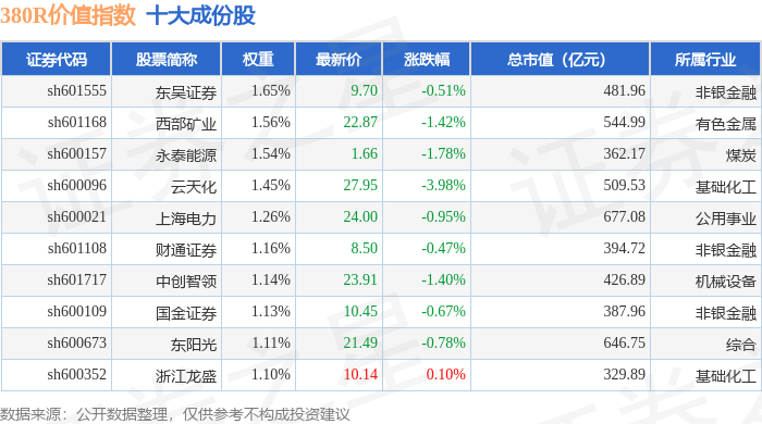资金流向方面,380R价值(000120)指数成份股当日主力资金净流出合计72.95亿元,游资资金净流入合计20.86亿元,散户资金净流入合计52.09亿元。成份股资金流向详情见下表: