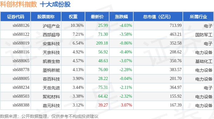 证券之星消息,10月16日,科创材料(000689)指数报收于1157.46点,跌2.2%,成交163.37亿元,换手率2.22%。当日该指数成份股中,上涨的有6家,嘉元科技以3.07%的涨幅领涨,下跌的有44家,南亚新材以7.84%的跌幅领跌。