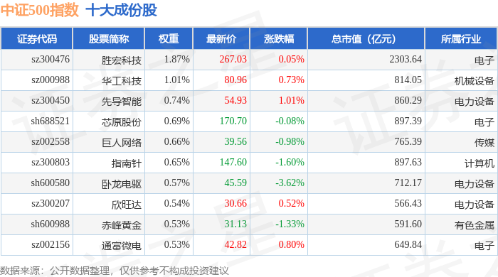中证500(000905)指数十大成份股详情如下: