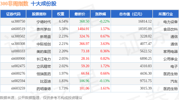 证券之星消息,10月16日,300非周(000969)指数报收于5387.79点,涨0.21%,成交3899.02亿元,换手率1.04%。当日该指数成份股中,上涨的有79家,阳光电源以7.66%的涨幅领涨,下跌的有116家,华大九天以4.59%的跌幅领跌。