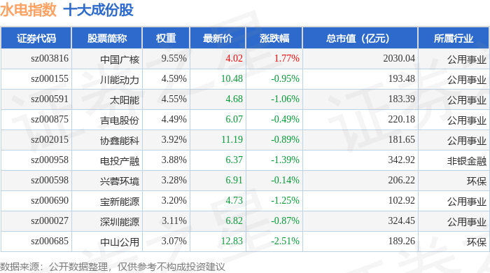 近10日内水电指数(399234)成份股做了调整,新纳入了1只股票。