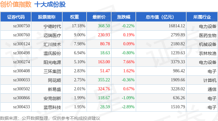 证券之星消息,10月16日,创价值(399295)指数报收于5491.16点,跌0.21%,成交1055.86亿元,换手率2.62%。当日该指数成份股中,上涨的有14家,阳光电源以7.66%的涨幅领涨,下跌的有36家,华大九天以4.59%的跌幅领跌。