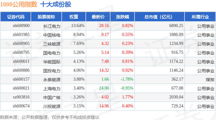证券之星消息,10月16日,1000公用(399390)指数报收于2708.13点,涨0.18%,成交195.79亿元,换手率0.88%。当日该指数成份股中,上涨的有22家,华能水电以2.15%的涨幅领涨,下跌的有21家,九丰能源以2.24%的跌幅领跌。