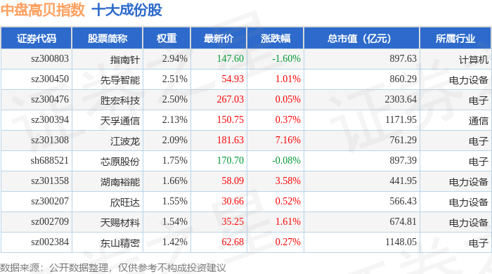 证券之星消息,10月16日,中盘高贝(399407)指数报收于3065.73点,跌0.67%,成交1476.32亿元,换手率2.39%。当日该指数成份股中,上涨的有26家,江波龙以7.16%的涨幅领涨,下跌的有74家,华大九天以4.59%的跌幅领跌。