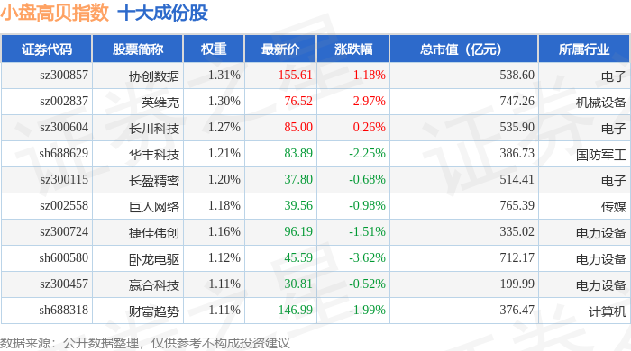 证券之星消息,10月16日,小盘高贝(399409)指数报收于6217.88点,跌1.08%,成交1278.49亿元,换手率3.35%。当日该指数成份股中,上涨的有29家,佰维存储以8.76%的涨幅领涨,下跌的有121家,利欧股份以7.05%的跌幅领跌。