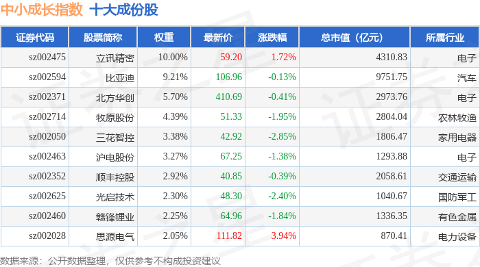 证券之星消息,10月16日,中小成长(399602)指数报收于1252.09点,跌0.48%,成交1238.89亿元,换手率3.14%。当日该指数成份股中,上涨的有29家,楚江新材以10.03%的涨幅领涨,下跌的有70家,利欧股份以7.05%的跌幅领跌。