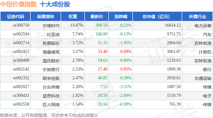 证券之星消息,10月16日,中创价值(399627)指数报收于2488.07点,跌0.78%,成交914.73亿元,换手率1.43%。当日该指数成份股中,上涨的有37家,华明装备以8.29%的涨幅领涨,下跌的有126家,申通快递以7.0%的跌幅领跌。