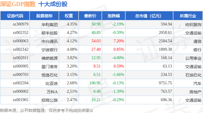 证券之星消息,10月16日,深证GDP(399648)指数报收于11809.35点,跌0.44%,成交1769.39亿元,换手率1.93%。当日该指数成份股中,上涨的有28家,楚江新材以10.03%的涨幅领涨,下跌的有72家,金风科技以4.36%的跌幅领跌。