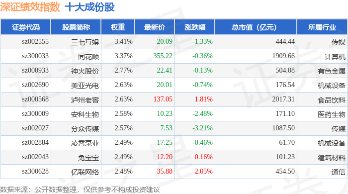 资金流向方面,深证绩效(399655)指数成份股当日主力资金净流出合计32.03亿元,游资资金净流入合计9.85亿元,散户资金净流入合计22.19亿元。成份股资金流向详情见下表:
