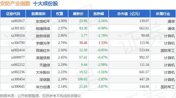资金流向方面,安防产业(399693)指数成份股当日主力资金净流出合计17.27亿元,游资资金净流入合计6.38亿元,散户资金净流入合计10.89亿元。成份股资金流向详情见下表:
