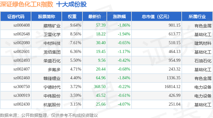 深证绿色化工R(470076)指数十大成份股详情如下: