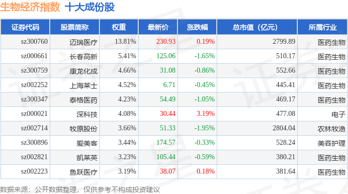 证券之星消息,10月16日,生物经济(970038)指数报收于2311.8点,跌0.34%,成交227.58亿元,换手率1.51%。当日该指数成份股中,上涨的有13家,深科技以3.19%的涨幅领涨,下跌的有36家,安科生物以2.48%的跌幅领跌。