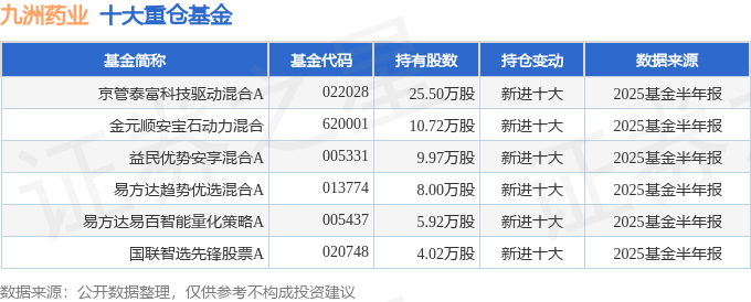 持有九洲药业最多的基金为京管泰富科技驱动混合A,目前规模为0.57亿元,最新净值1.4123(10月16日),较上一交易日下跌1.4%。该基金现任基金经理为肖强。