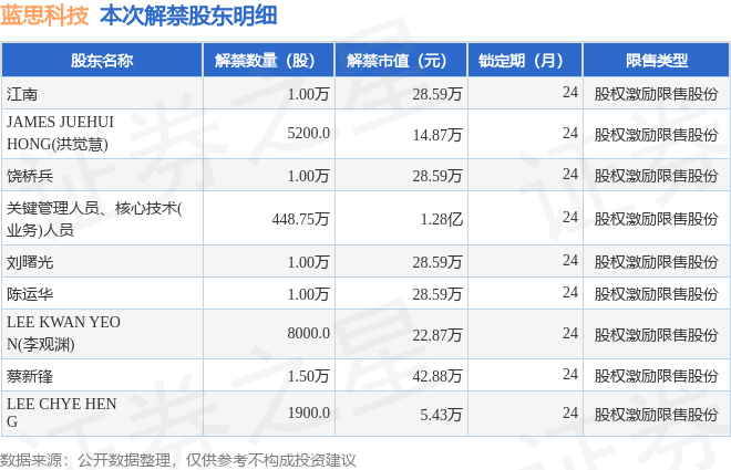证券之星消息,根据市场公开信息整理,蓝思科技(300433)于10月17日将有455.76万股限售股份解禁,为公司股权激励限售股份,占公司总股本0.09%。(本次数据根据历史公告整理得出,实际情况以上市公司最新公告为准)最近一年内,该股累计解禁469.48万股,占总股本的0.09%。本次解禁后,公司还有1086.13万股限售股份,占总股本0.21%。具体如下图所示: