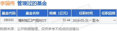 李瑞伟先生:中国国籍,研究生/硕士。2006-2009上海涅柔斯投资管理有限公司/交易员,2012-2014启迪控股园区/拓展总监,2014-2020郑州启迪科技园发展有限公司/总经理,2020-2024昆明云大启迪科技园发展有限公司/总经理,2023-2024腾冲启迪永安科技城开发有限公司/总经理,2024-至今博时基金管理有限公司/现任博时招商蛇口产业园封闭式基础设施证券投资基金的基金经理。