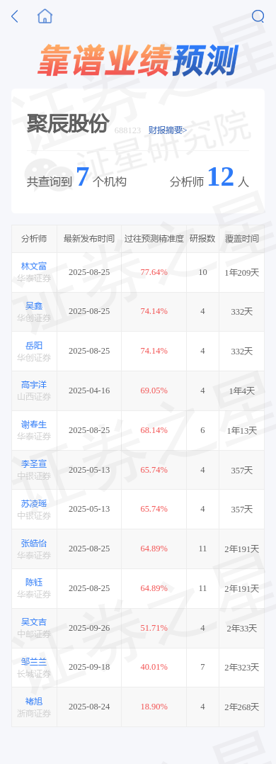 如果您对这家公司感兴趣,可以参考证星研究院统计的聚辰股份的分析师业绩预测数据,其中根据华泰证券的分析师林文富预测公司未来PE为15.0(更多特色估值数据尽在证星研究院,所有数据均来源公开资料,期且所有资料都存在一定时间滞后,所有相关数据均不可作为投资决策单一依据)。