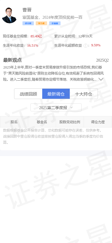 在最新基金报告期内,曹晋有以下调仓(附大佬持仓 - 最新调仓截图):