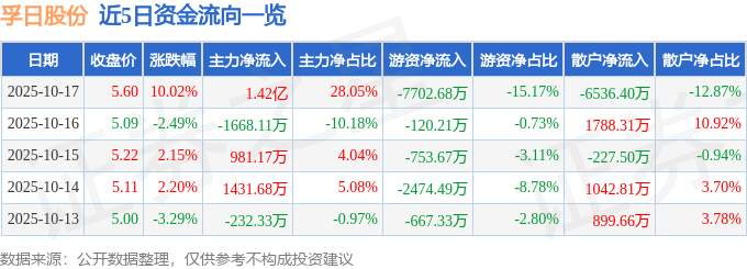 10月17日的资金流向数据方面,主力资金净流入1.42亿元,占总成交额28.05%,游资资金净流出7702.68万元,占总成交额15.17%,散户资金净流出6536.4万元,占总成交额12.87%。
