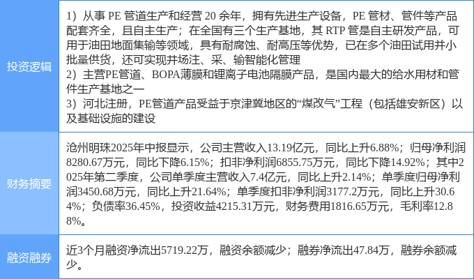 证券之星消息,沧州明珠10月17日涨停收盘,收盘价4.26元。该股于9点25分涨停,2次打开涨停,截止收盘封单资金为4663.95万元,占其流通市值0.66%。
