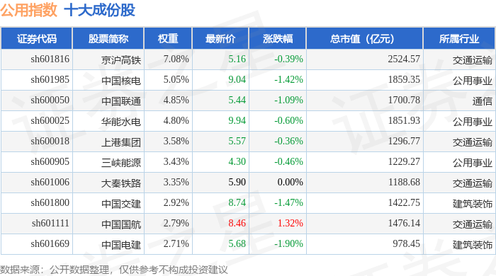 资金流向方面,公用指数(000007)成份股当日主力资金净流出合计19.43亿元,游资资金净流入合计2.72亿元,散户资金净流入合计16.71亿元。成份股资金流向详情见下表: