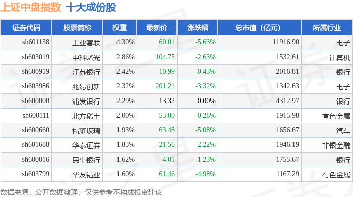 证券之星消息,10月17日,上证中盘(000044)指数报收于4557.34点,跌2.14%,成交1572.47亿元,换手率1.06%。当日该指数成份股中,上涨的有15家,中金黄金以2.21%的涨幅领涨,下跌的有109家,生益科技以10.0%的跌幅领跌。