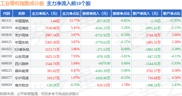 资金流向方面,工业等权(000072)指数成份股当日主力资金净流出合计58.82亿元,游资资金净流入合计11.37亿元,散户资金净流入合计47.45亿元。成份股资金流向详情见下表: