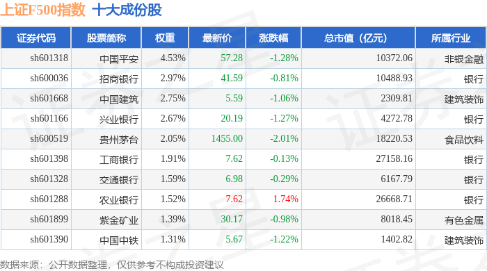 上证F500(000100)指数十大成份股详情如下: