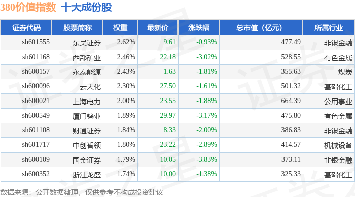 资金流向方面,380价值(000118)指数成份股当日主力资金净流出合计28.1亿元,游资资金净流入合计5.24亿元,散户资金净流入合计22.86亿元。成份股资金流向详情见下表: