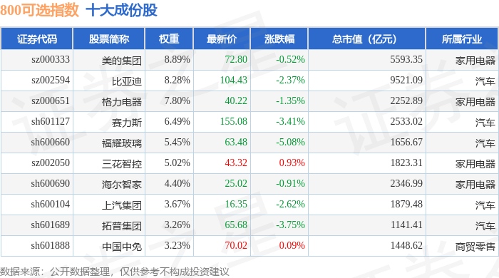 证券之星消息,10月17日,800可选(000931)指数报收于6019.38点,跌2.64%,成交623.89亿元,换手率1.57%。当日该指数成份股中,上涨的有4家,三花智控以0.93%的涨幅领涨,下跌的有51家,德赛西威以9.95%的跌幅领跌。