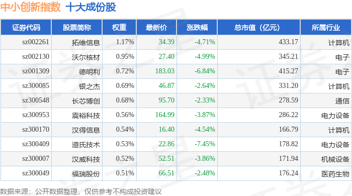 中小创新(399015)指数十大成份股详情如下: