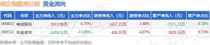 资金流向方面,综企指数(399249)成份股当日主力资金净流入合计4454.46万元,游资资金净流入合计2087.6万元,散户资金净流出合计6542.07万元。成份股资金流向详情见下表: