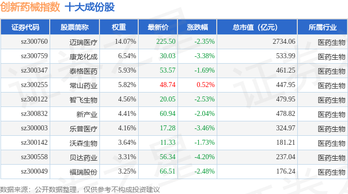 证券之星消息,10月17日,创新药械(399265)指数报收于1085.0点,跌1.78%,成交164.24亿元,换手率2.1%。当日该指数成份股中,上涨的有6家,华兰疫苗以9.8%的涨幅领涨,下跌的有44家,贝达药业以4.2%的跌幅领跌。