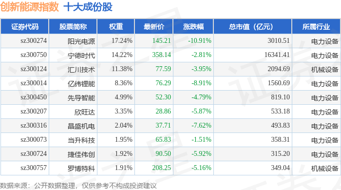 证券之星消息,10月17日,创新能源(399266)指数报收于3355.09点,跌6.07%,成交836.07亿元,换手率4.46%。当日该指数成份股中,下跌的有50家,盛弘股份以12.95%的跌幅领跌。