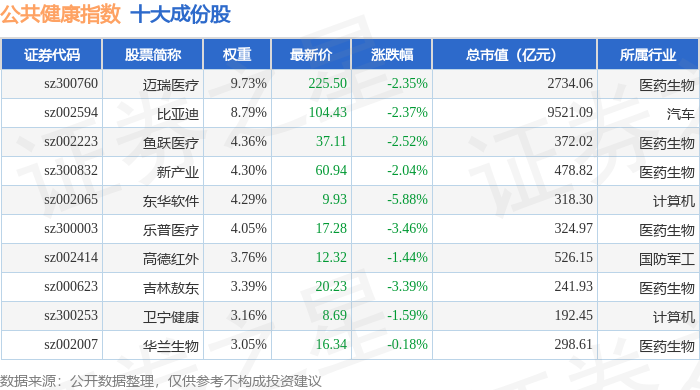 证券之星消息,10月17日,公共健康(399277)指数报收于2741.07点,跌2.27%,成交248.73亿元,换手率2.19%。当日该指数成份股中,上涨的有3家,舒泰神以6.49%的涨幅领涨,下跌的有47家,东华软件以5.88%的跌幅领跌。