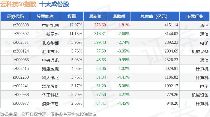 证券之星消息,10月17日,云科技50(399279)指数报收于4478.65点,跌3.44%,成交1272.92亿元,换手率3.26%。当日该指数成份股中,上涨的有2家,华天科技以10.02%的涨幅领涨,下跌的有48家,中兴通讯以9.99%的跌幅领跌。