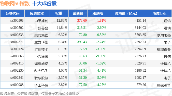 证券之星消息,10月17日,物联网50(399285)指数报收于5563.78点,跌3.32%,成交1163.04亿元,换手率3.14%。当日该指数成份股中,上涨的有2家,华天科技以10.02%的涨幅领涨,下跌的有48家,中兴通讯以9.99%的跌幅领跌。