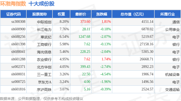 证券之星消息,10月17日,环渤海(399357)指数报收于3377.93点,跌0.9%,成交900.81亿元,换手率0.34%。当日该指数成份股中,上涨的有4家,中际旭创以1.81%的涨幅领涨,下跌的有36家,三一重工以4.54%的跌幅领跌。