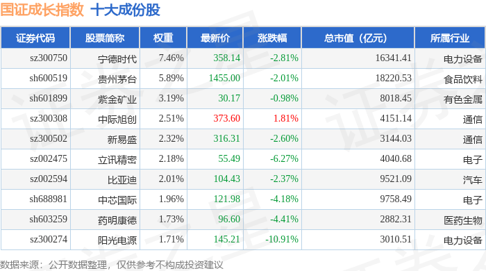 资金流向方面,国证成长(399370)指数成份股当日主力资金净流出合计362.46亿元,游资资金净流入合计107.02亿元,散户资金净流入合计255.44亿元。成份股资金流向详情见下表: