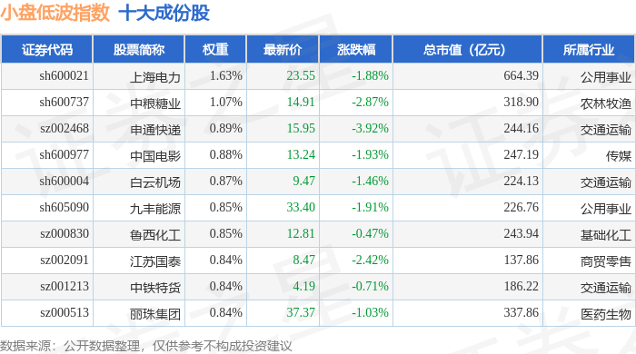 小盘低波(399408)指数十大成份股详情如下: