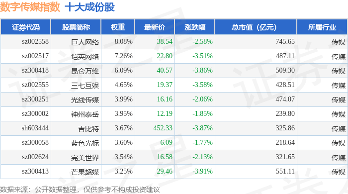 资金流向方面,数字传媒(399434)指数成份股当日主力资金净流出合计22.35亿元,游资资金净流入合计1.71亿元,散户资金净流入合计20.64亿元。成份股资金流向详情见下表: