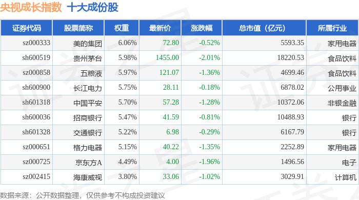央视成长(399552)指数十大成份股详情如下: