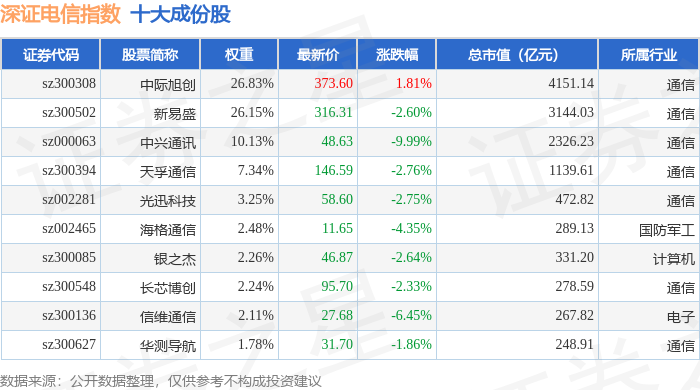 深证电信(399621)指数十大成份股详情如下: