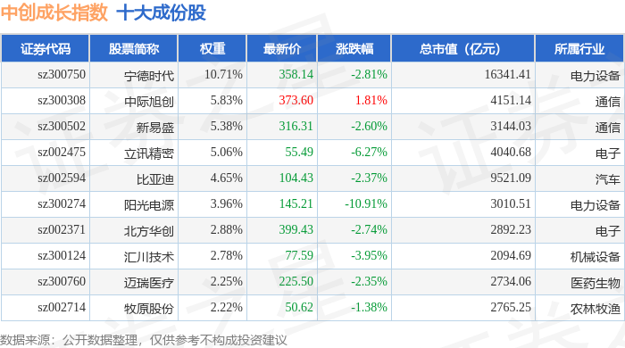 资金流向方面,中创成长(399626)指数成份股当日主力资金净流出合计214.31亿元,游资资金净流入合计48.76亿元,散户资金净流入合计165.55亿元。成份股资金流向详情见下表: