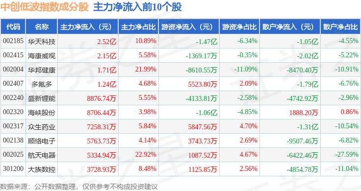 资金流向方面,中创低波(399665)指数成份股当日主力资金净流出合计115.47亿元,游资资金净流入合计27.24亿元,散户资金净流入合计88.23亿元。成份股资金流向详情见下表: