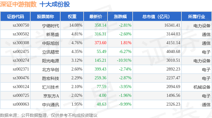 证券之星消息,10月17日,深证中游(399705)指数报收于3911.53点,跌3.95%,成交2775.93亿元,换手率2.23%。当日该指数成份股中,上涨的有6家,华天科技以10.02%的涨幅领涨,下跌的有144家,阳光电源以10.91%的跌幅领跌。