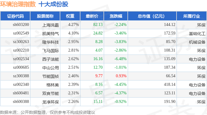 资金流向方面,环境治理(399806)指数成份股当日主力资金净流出合计11.12亿元,游资资金净流入合计3862.94万元,散户资金净流入合计10.74亿元。成份股资金流向详情见下表: