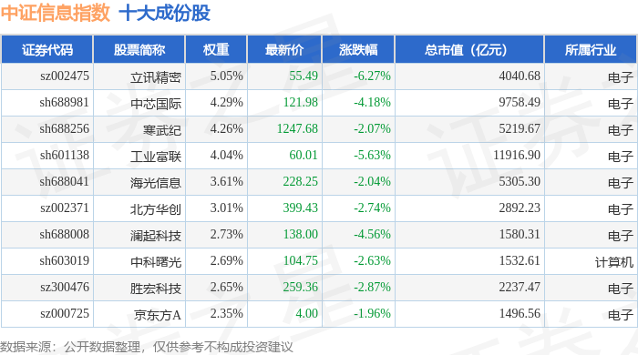 中证信息(399935)指数十大成份股详情如下: